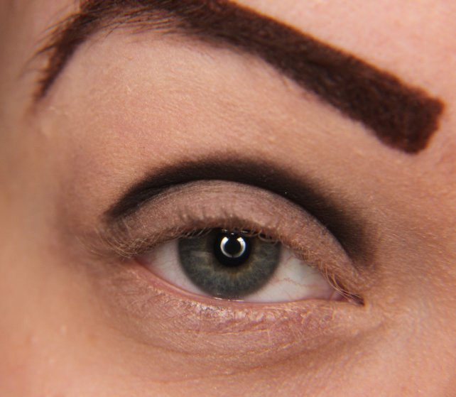 Then use pencil brush to apply matte black eyeshadow to your crease:
